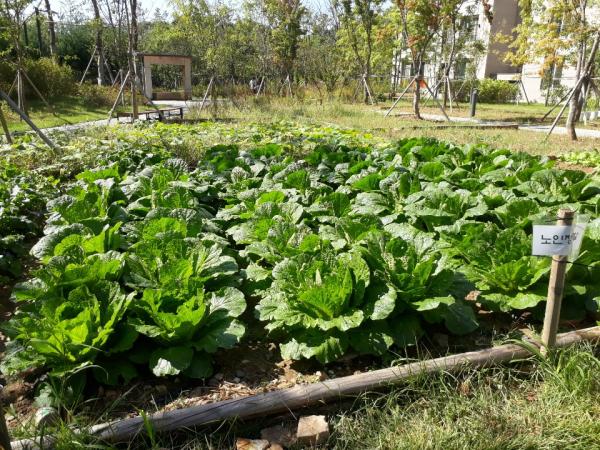 이편한세상 2차 경로당에서는 23㎡ 남짓한 텃밭을 경로당 회원들이 매일 돌아가면서 농약을 쓰지 않고 아침마다 벌레를 잡아가며 가꿨으며 드디어 김장을 할 수 있을 만큼 풍성한 결실을 맺었다.