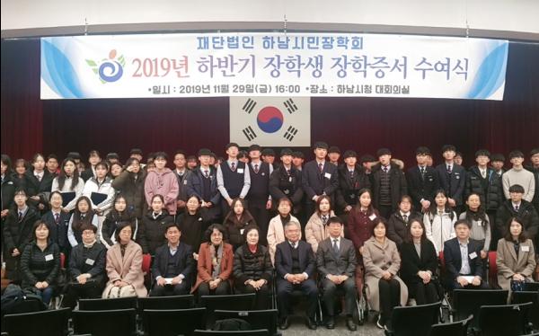 하남시민장학회는 지난달 29일 하남시청 대회의실에서 장학생 및 학부모 등 200여명이 참석한 가운데 2019년 하반기 장학증서 수여식을 가졌다고 밝혔다.