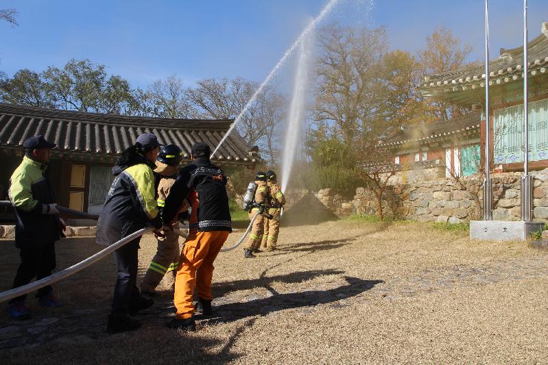 | 흥해 향교 화재 진압훈련을 하고 있다.<미디어 타임즈> |