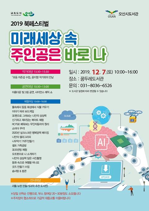 오산시는 오는 7일 토요일 세교동에 위치한 꿈두레도서관에서 ‘2019 오산시 도서관 시민 북페스티벌’을 개최한다고 밝혔다.