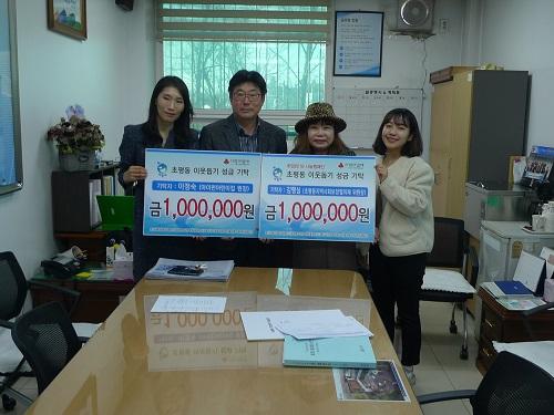 오산시 초평동은 2일 초평동지역사회보장협의체 위원장과 총무로서 활동하고 있는 김행심과 이정숙위원이 초평동에 거주하는 복지사각지대의 어려운 이웃을 위해 각각 후원금 100만원을 기탁했다고 밝혔다.
