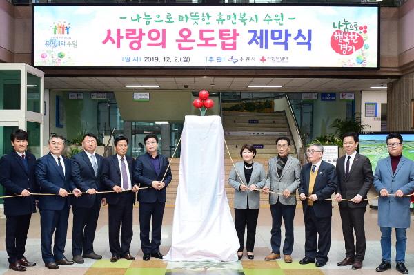 수원시는 2일 시청 로비에서 ‘사랑의 온도탑’ 제막식을 열고 ‘희망2020나눔 캠페인’ 시작을 알렸다.