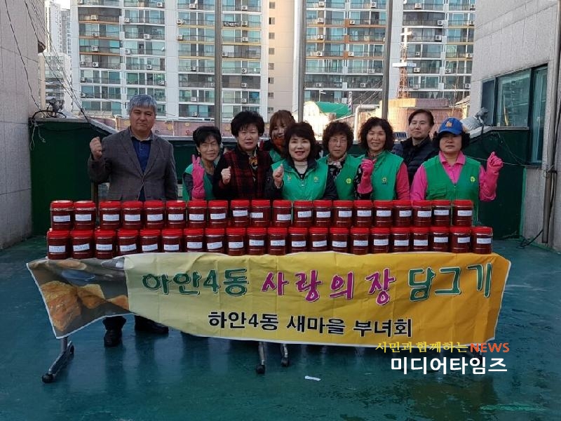 [미디어타임즈= 신정식 기자] 광명시 하안4동(동장 조봉자)은 새마을부녀회 10여 명과 함께 29일 사랑의 고추장 나눔 행사를 가졌다.