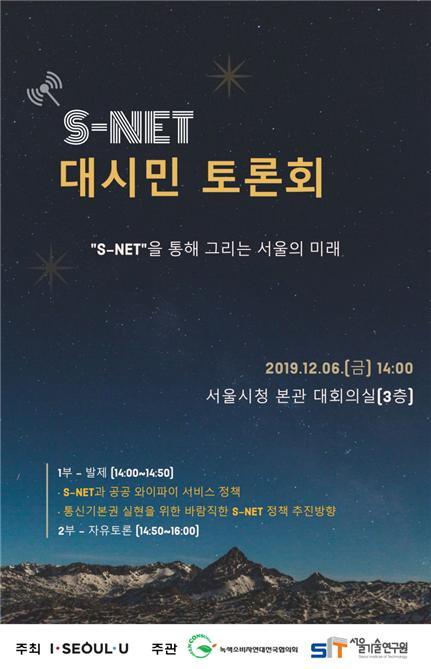서울시가 시민의 보편적 통신복지, 통신기본권 실현을 위한 ‘스마트서울 네트워크’ 사업과 관련한 시민, 학계, 전문 기업 등이 함께하는 ‘S-Net 대시민 토론회’를 개최한다.