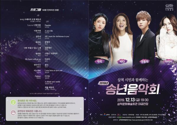 삼척시는 오는 13일 저녁 7시 30분 문화예술센터 대공연장에서 2019년 삼척시민과 함께 하는 송년 음악회를 개최한다.