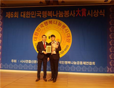 ‘대한민국 행복나눔봉사대상’은 시사연합신문사가 국가와 지역사회 발전에 헌신적으로 봉사와 공헌을 한 시민과 단체, 지방자치단체장, 지방의회 의원을 해당 분야 관계자로부터 추천받아 엄격한 심사를 거쳐 시상하는 영예로운 상이다.