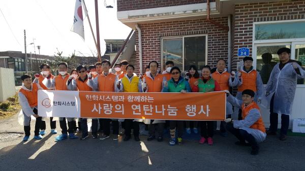 한화시스템과 남사면 직원들은 이 연탄을 관내 홀로어르신 등 어려운 이웃 5가구에 직접 전달하며 위로했다.