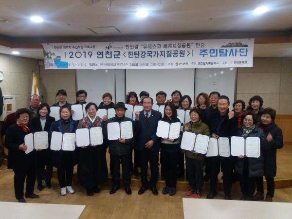 주민탐사단은 연천군 국가지질공원의 지질뿐만 아니라 역사·문화·생태·고고 등 다양한 분야의 전문가를 초빙해 매주 교육하고 현장학습을 통해 지역의 가치를 배우고 연천을 많은 이들에게 알리는 데 목적이 있다. 본 사업은 2016년부터 추진해 온 사업으로 연천문화원 산하 연천문화예술학교가 주관했으며 올해는 지난 9월 2일 개강한 이래 12월 2일까지 매주 월요일 2시간씩 강좌를 진행했고 20명이 수료증을 받았다.