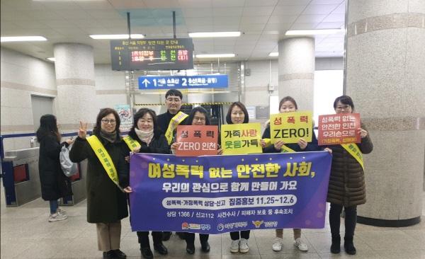 인천 중구는 지난달 29일 관내 동인천역사 내에서 성폭력·가정폭력 추방주간을 맞이해 폭력 예방 캠페인을 실시했다.