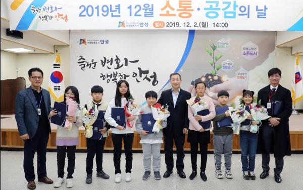 시상자로 나선 최문환 안성시장 권한대행은 “이 학생들은 우리나라를 이끌어갈 꿈나무들이고 어린나이에도 불구하고 청렴에 관심을 갖고 대회에 참여한 것이 대견하다”며 “지금처럼 학업에 열중해 좋은 어른으로 자라길 바란다”고 말했다.