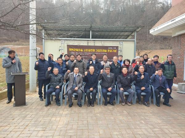 강원도는 3일 태백시 원동마을회관에서 정경수 강원도 산림소득과장, 홍동표 한국동서발전 재생에너지처장, 오태석 강원도경제진흥원 본부장, 이찬영 태백 원동마을 통장 등 70여명이 참석한 가운데 강원도 제1호로 조성된 ‘기업참여 미래 숲’ 준공식을 갖고 현판 제막식, 숲 탐방 등을 진행했다.