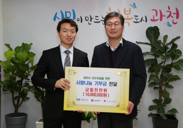 과천시는 3일 시청 시장실에서 LG화학으로부터 기부금 1천만원을 전달받았다.