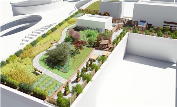 옥상텃밭은 식재 작물도 수확을 주목적으로 했던 쌈채소, 열매채소 등에 숲속 생태계를 연상시킬 수 있는 고사리, 더덕과 같은 산나물을 심고 도시에서 보기 어려운 보리, 수수와 같은 곡식류를 심어 정겨운 농촌의 풍경을 담아냈다.