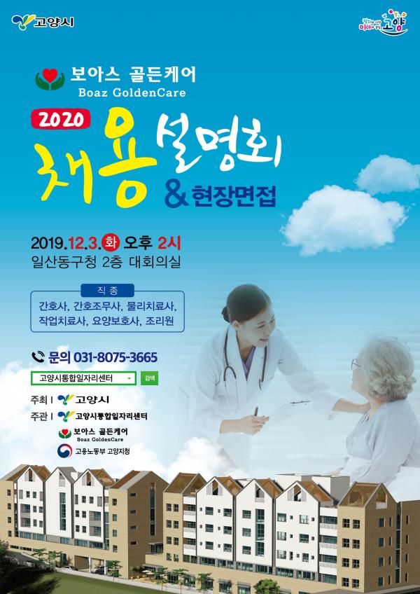 고양시는 지난 3일 오후 2시부터 일산동구청 2층 대회의실에서 ‘보아스골든케어 채용설명회 및 현장면접’을 개최했다.