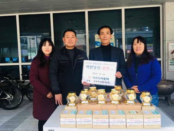 오천명 동장은 “아조타아조아의 인삼주와 함께 감사의 마음을 잘 전하겠으며 후원자와 수혜자 모두가 따듯한 생연2동이 되도록 관심과 지원을 아끼지 않겠다”고 전했다.
