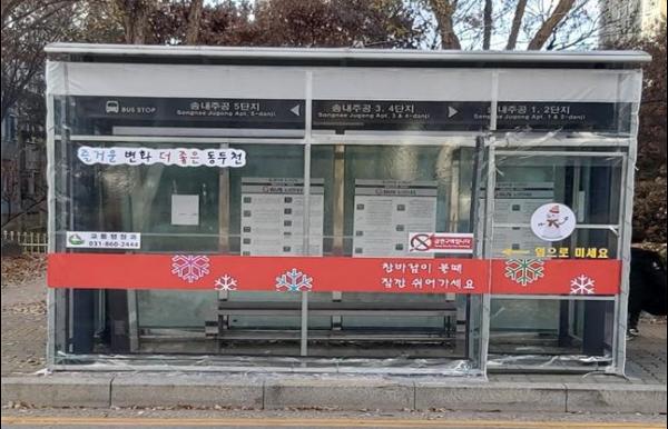 지난해 겨울 혹한에 대비해 설치했던 버스승강장 온실텐트가 시민들의 큰 호응을 얻어 올해 겨울 동두천시 버스승강장에 재등장했다.