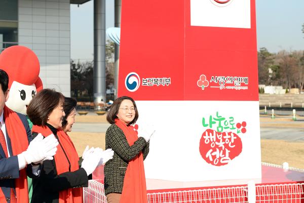 성남시에서는 4일 다가오는 겨울철 어려운 이웃을 위한 연말 집중 캠페인의 일환으로 경기사회복지공동모금회 주최, 주관으로 사랑의 온도탑 제막식을 실시했다.