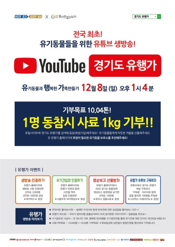 이번 유튜브 생방송은 경기도가 반려동물 입양문화 정착을 목적으로 유튜브, 홈페이지 등 온라인 플랫폼을 통해 추진하는 ‘2019 경기도 유행가’ 프로그램의 일환이다.