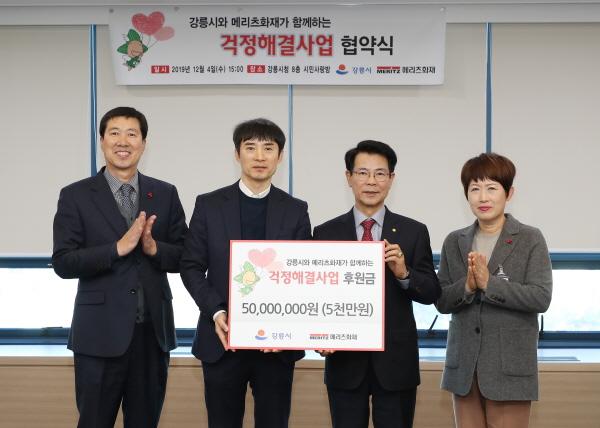 강릉시는 메리츠화재와 지난 4일 8층 시민사랑방에서‘강릉시 - 메리츠화재 걱정해결사업 업무 협약’을 체결했다.