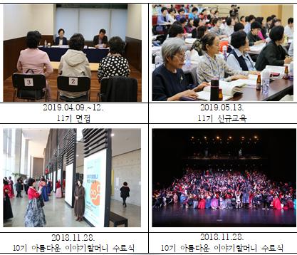 이번 행사에서는 한국예술종합학교 재학생들이 태평무, 경기민요, 장구춤 등, 축하공연을 펼치고 ‘이야기 구연 시연’과 이번에 수료하는 11기 할머니 6개 팀의 자축 공연도 이어진다.