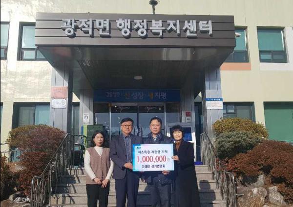 윤흥수 광적면장은 “지역사회에 대한 꾸준한 관심에 감사드린다”며“소중한 성금은 관내 복지사각지대에 있는 어려운 이웃을 위해 귀하게 사용하겠다”고 밝혔다.
