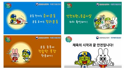 2019년 12월부터 2020년 4월까지 배구와 농구 경기장에서는 경기 전후에 스포츠 안전 수칙을 알기 쉽게 설명한 ‘안전송’과 ‘안전 영상’을 상영한다. 주요 겨울 스포츠 종목별로 안전 수칙, 사고 시 대처 방법 등 안전 정보를 제공하는 카드뉴스도 제작해 이번 달에 문체부와 국민체육진흥공단 등 관계 기관 누리소통망을 활용해 배포할 예정이다.