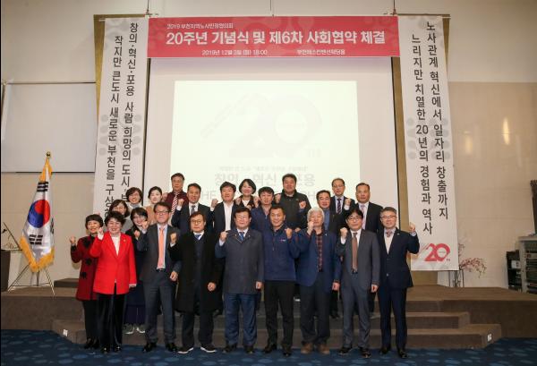 이어진 20주년 기념식에서는 공로자 감사패 전달, 청년일터혁신사례 우수청년기업 시상, 청년창업경진대회 시상을 진행하고 다 함께 20주년 기념 동영상을 시청했다. 기념식 이후 이어진 6차 협약식에서는 부천지역 창의, 혁신, 포용적 미래를 위한 ‘2019 부천 노사민정 일·노동 4.0 공동협약문’을 채택하고 선포했다.
