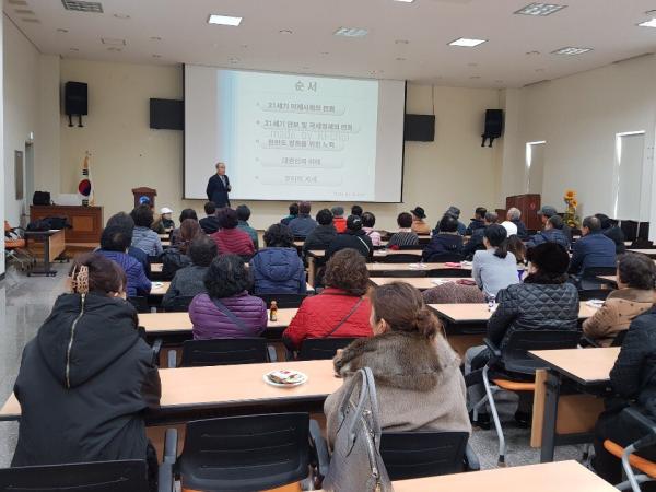 이번 교육은 옹진군민에게 건전한 민주시민 의식을 바탕으로 올바른 통일관과 미래지향적 사고를 배양하고자 추진됐으며 이날 김기철 서울대학교 대학원 겸임교수를 강사로 초빙해 2021세기 국제정세 변화와 대한민국 미래’라는 주제로 교육을 진행했다.