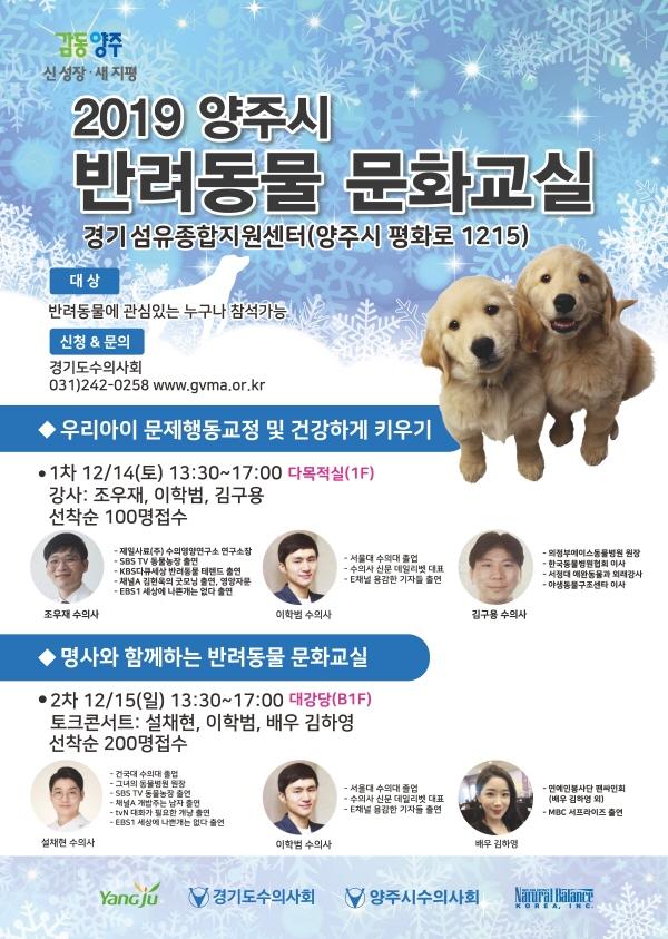 양주시는 오는 14일과 15일 양일간 경기섬유종합지원센터에서 ‘2019 양주시 반려동물 문화교실’을 운영한다.