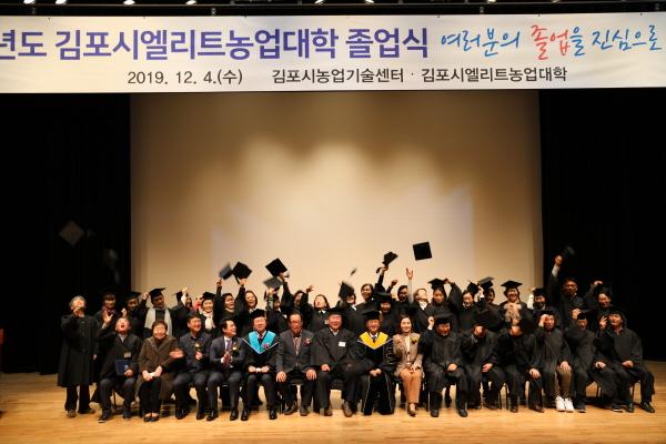 2019학년 김포시엘리트농업대학 졸업식이 지난 4일 졸업생과 가족, 내빈 등 160여명이 참석한 가운데 김포아트홀 공연장에서 개최됐다.