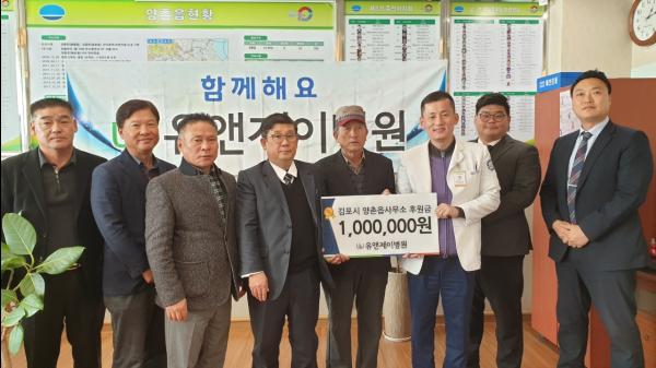 지난 4일 유앤제이병원은 지난 4일 대한노인회 김포시지회 통진읍분회에 성금 100만원을 전달했다.