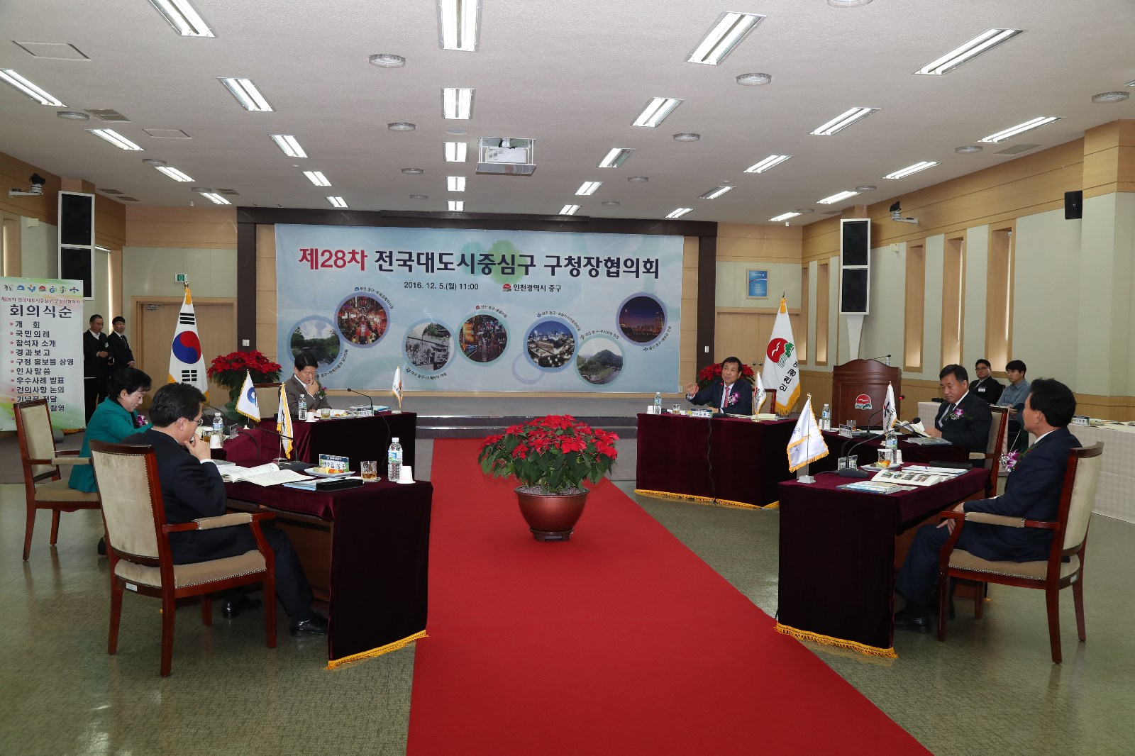 [미디어타임즈=문상수 기자] 인천 중구(청장 김홍섭)는 지난 5일 인천 중구청에서 서울, 부산, 인천, 광주, 대전, 울산의 대도시 중심구 구청장들이 모여 제28차 전국 대도시 중심구 구청장 협의회를 개최했다. 참석자는 김홍섭 인천 중구청장을 비롯해, 최창식 서울 중구청장, 김은숙 부산 중구청장, 김성환 광주 동구청장, 박용갑 대전 중구청장, 박성민 울산 중구청장 등 모두 6명이다. 대도시 중심구의 공통 현안과제인 도시 공동화 현상을 극복하기 위한 방안을 집중 논의하기 위해 개최한 이번 회의에서는 중심구별 우수사례 17건의 발표를 통해 중심구 도시에서 추진하는 역점사업 등을 소개하였으며, 김홍섭 인천 중구청장은 ‘인천 내항 항만재개발 사업 추진’, ‘인천상륙작전 월미축제 개최’, ‘송월동 동화마을 조성사업 추진’건의 성과와 관련된 우수사례를 소개하여 해양관광 거점도시, 관광‧문화 도시로서의 인천 중구의 위상을 한껏 드높혔다. 한편, 1996년부터 개최되어 이번 회의까지 모두 28차례 열린 전국 대도시 중심구 구청장 협의회는 대도시 중심구간 우수사례 및 특수사업에 대한 의견 교환과 벤치마킹, 그리고 불합리한 제도 등의 공동건의사항 중앙부처 건의를 통해 중심구 상호발전과 지방자치 발전을 도모하고 있다.