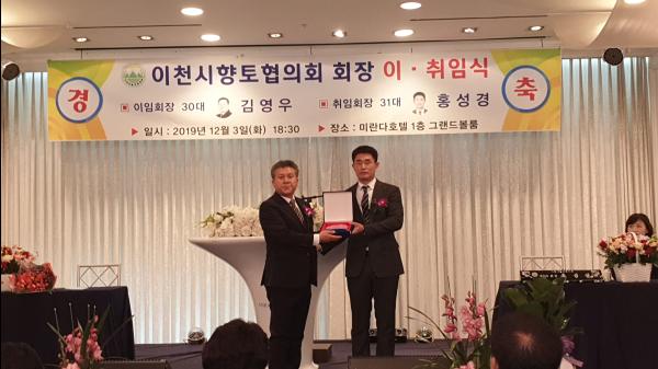 '이천시향토협의회 회장 이·취임식 ' 행사가 지난 3일 오후 6시 30분 미란다 호텔 1층에서 개최됐다.