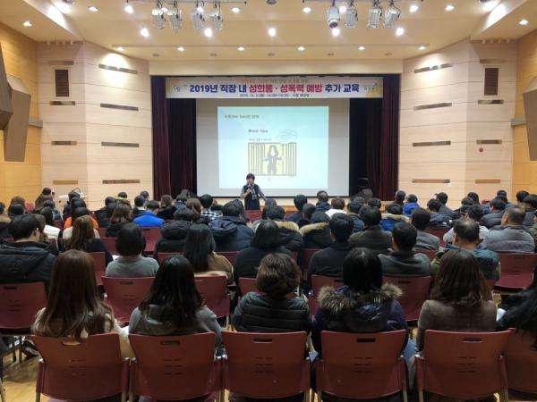 의정부시는 지난 2일 의정부시청 대강당에서 직원 200여명이 참석한 가운데 2019년 직장 내 성희롱?성폭력 예방 교육을 추가 실시했다.