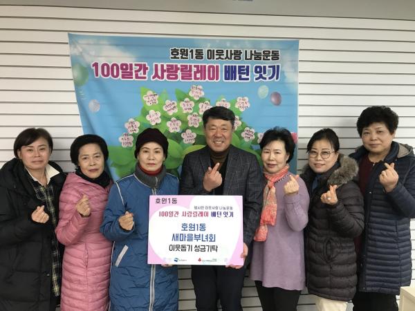 호원1동 새마을부녀회는 지난 4일 100일간 사랑릴레이 배턴 잇기 운동에 성금을 기탁했다.