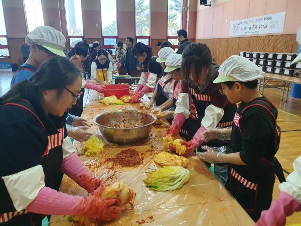 평택 반지초등학교는 지난 4일 본교 체육관에서 학생과 학부모, 교직원이 함께 참여하는 “김장김치 담그기 체험 및 나눔행사”를 진행하고 지역 어르신들을 위해 관내 경로당 26개소에 김장김치를 전달해 주위를 훈훈하게 했다.