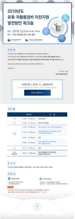 과기정통부, 12월 6일 ‘2019년 유휴·저활용장비 이전지원 워크숍’ 개최