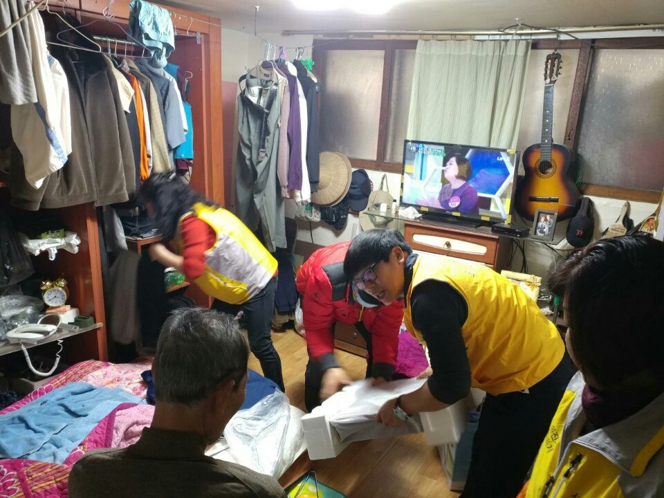 | 사랑더하기 서구지회 석남2동 저소득 독거노인에게 공기청정기 등 설치하고 있다 |