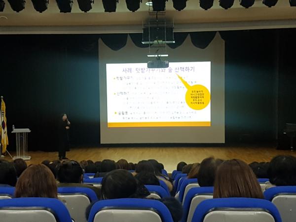 강의에 나선 김지연 강사는 “보육교사의 자존감이 높아야 영유아의 권리를 존중 할 수 있고 보육현장에서의 다양한 문제 발생을 극복할 수 있다”며 “사명감을 가지고 행복한 어린이집을 만들어 보자”고 현실감 넘치는 강의를 펼쳤다.