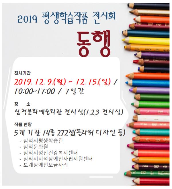 삼척시는 ‘ 2019 평생학습 작품 전시회 ‘동행’ ’을 삼척문화예술회관에서 개최한다.