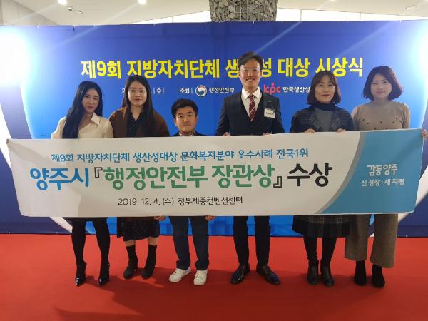 그 결과 양주시는 지난 4일 정부세종컨벤션센터에서 열린 ‘제9회 지방자치단체 생산성 대상’시상식에서 행정안전부 장관상 수상과 함께 문화복지분야 전국 1위의 영예를 안았다.