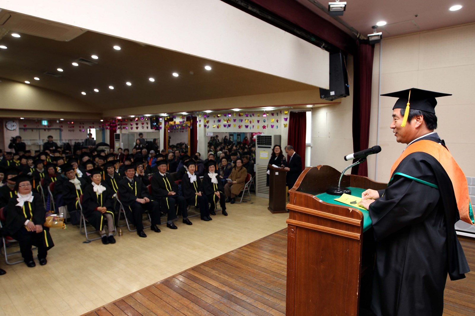 [미디어타임즈=문상수 기자] 인천 동구(구청장 이흥수)는 7일, 동구 노인복지관에서 대한노인회 동구지회 부설 노인대학 수료식을 개최했다.구에 따르면 이날 수료식은 1년 간 노인대학에 꾸준히 참여해 온 어르신들을 격려하고, 학내에 모범이 되는 어르신을 포상함으로써 건강하고 행복한 화합 분위기를 조성하고 어르신들이 존경받는 사회를 구현하고자 마련됐다.수료식에는 이흥수 동구청장을 비롯한 내빈과 노인 대학생 및 지역 어르신 등 200여 명이 참석했으며, 기념사와 공로상 수상 등 공식행사를 진행하며 졸업의 영광을 함께 축하했다.수료생 전원은 그동안 요가, 건강백세체조, 노래교실, 노인교양특강 수업을 함께 들으며 정들었던 학우들과 수료의 기쁨을 나눴으며, 졸업 가운을 입고 서로 기념촬영을 하며 마지막 추억을 남겼다.한편 구 관계자는 “무언가를 배워나가는 과정에서 행복과 즐거움을 느끼는 어르신들이 많다”며 “앞으로도 더욱 많은 어르신들이 노인대학을 통해 배움의 기쁨을 누릴 수 있도록 노력하겠다”고 말했다.