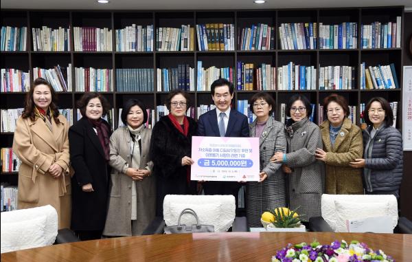 의정부시 여성단체협의회는 지난 5일 어려운 아동을 돕기 위한 디딤씨앗통장 300만원을 후원하고 사랑의 라면 80상자를 의정부시에 기탁했다.