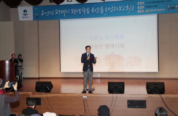 이어 조창희 평생교육사의 2019년 평생교육 추진사업 성과보고와, 평택북부노인복지관 정장균 팀장의 평생학습 특성화 프로그램 사례 발표, 문화예술공동체나눔 동아리 한혜진 회장의 학습동아리 우수사례 발표가 있었으며 특히 이번 워크숍에서는 강창진 강사의 ‘공감과 소통의 평생교육’의 강연과 ‘라 클라쎄’ 남성중창단의 화합 음악회가 진행돼 참석자들의 많은 호응을 얻었다.
