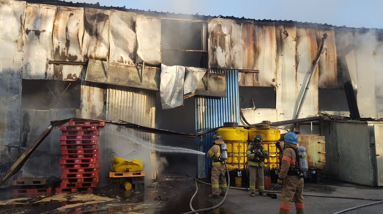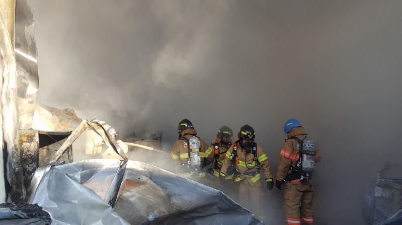 | 인천서부소방서 오류동 사료가공 공장화재를 진화하고 있다. <ⓒ미디어타임즈> |