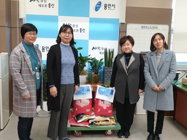 수지구청 민원봉사과 직원들은 올해 청렴활동 우수 부서로 선정돼 받은 포상금 일부로 마련한 쌀 10kg짜리 7포대를 기탁했다.
