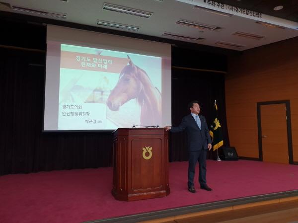 경기도의회 안전행정위원회 박근철위원장은 5일 경기도 수원시 소재한 농협 경기영업본부 4층 대회의실에서 ‘말산업의 현재와 미래’를 주제로 강의에 나섰다.