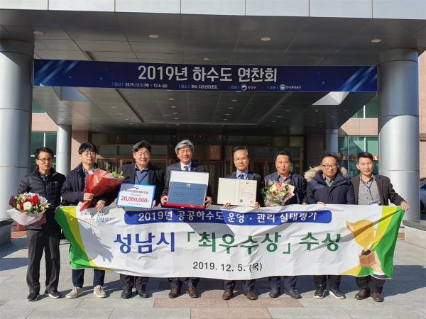 성남시가 환경부에서 실시한 ‘2019년도 공공하수도시설 운영·관리 실태평가’에서 최우수 기관으로 선정되어 지난 5일 개최된 하수도 연찬회에서 최우수상을 수상했으며 성남시의 우수 운영관리사례를 발표했다.