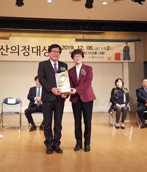 조광희 경기도의회 교육행정위원장이 6일 경기문화재단 다산홀에서 개최된 ‘제1회 다산의정대상’에서 광역정치부문 의정대상을 수상했다. 다산의정대상은 중부일보가 경인지역의 풀뿌리 정치인들을 찾아 1천 6백만 수도권 주민의 이름으로 표창하기 위해 올해 처음 제정된 상이다.