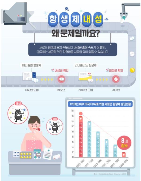 2015년 세계보건총회는 ‘국제 수준에서 공동의 즉각적인 행동이 없으면 항생제 내성으로 인류는 위기에 직면’함을 경고하기 위해 항생제 내성 국제실행계획을 결의했다.